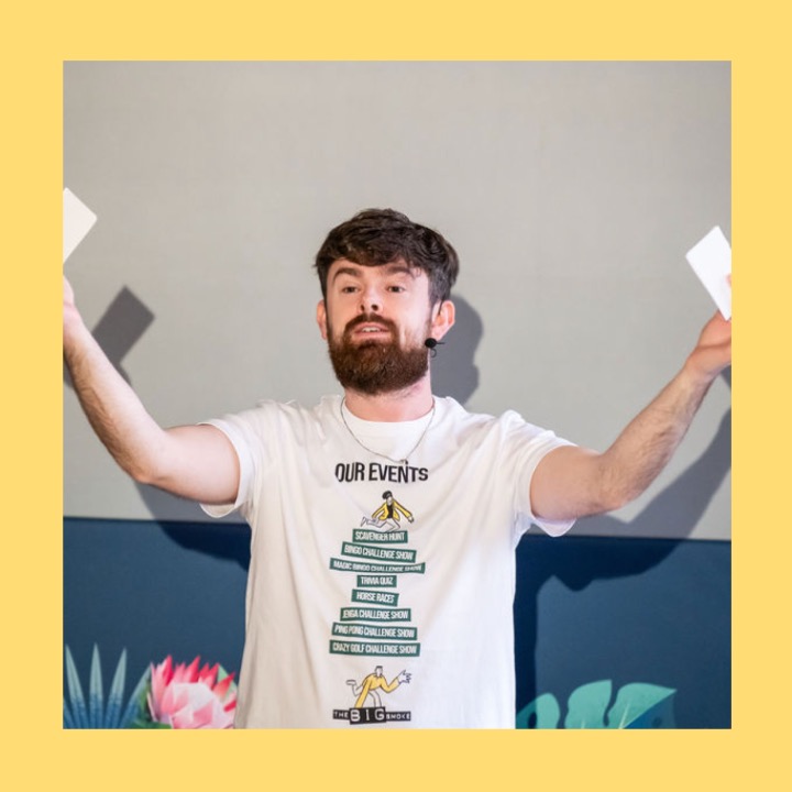 Elliot is one of our go-to hosts when energy, enthusiasm and a welcoming vibe are key. He’s great at reading the room, breaking the ice, and guiding teams through every challenge with friendly confidence. Whether it’s a small group or a big crowd, Elliot’s warm personality and clear communication make every guest feel part of the fun from the start.